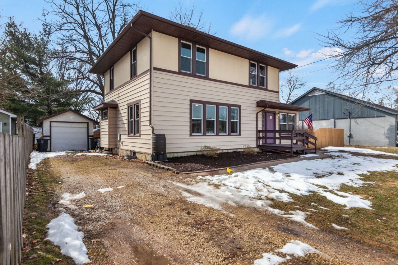 Welcome to this beautifully updated 3-bedroom Farmhouse in the heart of Walworth, just steps from schools, restaurants, and downtown! Entering through the front three-seasons room, elegant French doors lead into a home perfectly blending modern updates with historic charm. The living room, featuring a decorative (non-functional) fireplace, flows into a formal dining room showcasing gorgeous original built-ins. You'll love the bright, open kitchen with its bay window overlooking the backyard, complete with a new wood fence! Upstairs features three generous bedrooms boasting beautiful original woodwork, plus a full bathroom with classic built-in cabinets. With fresh touches complementing its historic soul, this move-in-ready gem is a must-see!