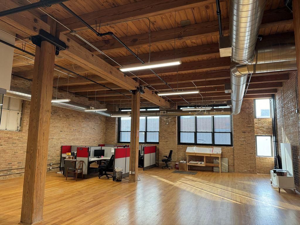 3,690 SF loft office situated on the first floor of a beautifully renovated two-story building. Great workspace boasting exposed brick walls, wood floors, and a 14-foot ceiling, creating a comfortable environment filled with natural light from tall windows. The space comes with a fully-equipped kitchen and ADA-compliant entry. Designed for flexibility, the open floor plan is perfect for tech companies, R&D, or any creative office needs. Plus, benefit from 3-5 dedicated outdoor parking spots, with additional overflow options available. Less than 1 mile west of the bustling Fulton Market District, you'll have access to an array of dining and entertainment options. Commuting is an option with the Ashland Green/Pink Line only 0.3 miles away. Elevate your workspace and thrive in the heart of Chicago's Kinzie Corridor!