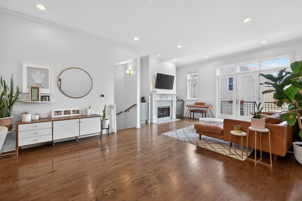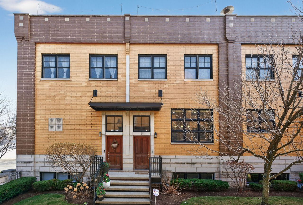 Discover this exceptional 4-bedroom, 3-bathroom townhome in the vibrant Logan Square neighborhood. Tucked inside a gated courtyard, it combines the convenience of an attached 2-car attached garage with the feel of a spacious single-family home. Soaring 10-foot ceilings and rich hardwood floors create an open, airy ambiance throughout. The living and dining areas flow seamlessly to a private balcony-perfect for relaxing or grilling. The updated chef's kitchen features gorgeous countertops, a subway tile backsplash, stainless steel appliances, and generous breakfast bar seating. Upstairs, the second level offers three bedrooms and two full baths, including a stunning primary suite with a large walk-in closet and a spa-like en-suite bath complete with dual vanity, separate shower, and soaking tub. The top floor provides a flexible space ideal for a home office, workout area, or playroom, with direct access to a private roof deck showcasing impressive skyline views. The lower level includes a fourth bedroom that has been thoughtfully converted into a loft and a third full bath, making it perfect for guests or additional workspace. Ideally located near the 606 Trail, expressways, public transit, parks, and an array of restaurants and shops, this home delivers the best of modern city living.
