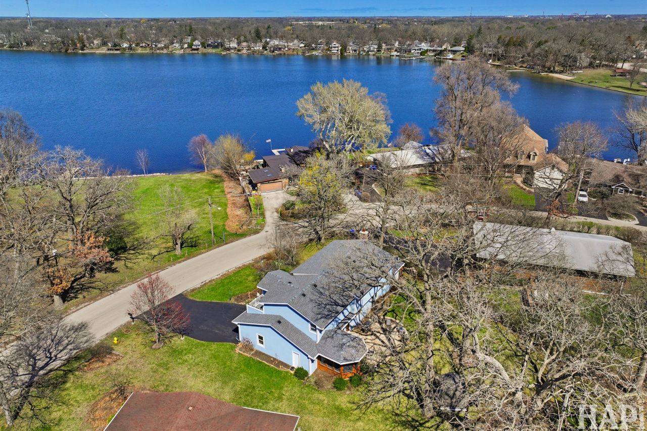 Set on a rare half-acre double lot overlooking Gages Lake and Willow Point Park, this beautifully updated home offers the kind of space, views, and flexibility that rarely come available in Wildwood. Featuring brand new flooring throughout along with a completely renovated kitchen, the home is truly move-in ready. A charming paver walkway leads to the expansive 31x6 front porch where you can relax and take in sunset views over the lake and park. Inside, the main level offers an open living and dining area, a sunroom with breezeway access, and a stunning three-season screen room with vaulted wood-beamed ceiling adjacent to the 8-person like-new Jacuzzi hot tub-creating a private, year-round retreat. The step-down family room features a bay window with park and lake views and a brick fireplace with custom handmade mantel. The new kitchen is bright and functional, with REAL WOOD cabinets and overlooks the lush backyard through a large bay window, plus a first-floor laundry room adds everyday convenience. Upstairs you'll find four spacious bedrooms plus a tandem office/sitting room that flows into the expansive primary suite with vaulted ceiling, abundant windows, and a private rooftop balcony offering panoramic views of the lake, park, and surrounding woods. Bathrooms have been tastefully updated, including a hall bath with whirlpool tub. The full basement is partially finished with a fun entertainment space, workshop area, and generous storage. Major updates include Marvin windows (2023), HVAC with whole-house humidifier - (2020), roof and gutters - (2018), and the indoor 8-person hot tub! The oversized backyard features mature oak trees, a large brick patio, playhouse, bonfire area, and access to Ridge Road. As a true double lot, the rear parcel is buildable and could be separated with its own address, offering exceptional future potential. Enjoy access to Wildwood Park District's parks, beaches, boat launches, trails, and more, all just minutes from Metra, tollways, forest preserves, golf, and shopping. This is lake community living at its best.