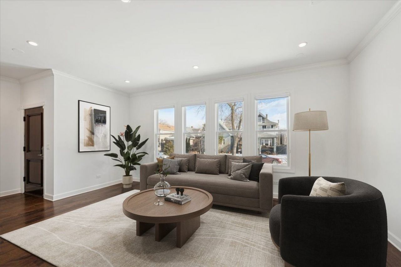 Portage Park lux sf on oversized lot. Custom renovation with an unmatched attention to detail and quality. No upgrade or luxury detail missed! Four bedrooms up. Luxurious primary en-suite with heated bath floors and giant walk-in closet. Well appointed kitchen with marble counters and Kitchenaid appliances, adjacent family room, dining area and over-sized mudroom with built-in coat/shoe/storage system that leads out to ample back yard. One bedroom on main floor with en-suite 1/2 bath as well as one bedroom in LL. Radiant floors in LL. Finished basement with under-floor heating, high ceilings and gym-mat interlocking rubber floor. New water service, sewer line, zoned heating/cooling (EVR air cleaner), green technology, newer solar panels, additional mudroom, bedroom, bathroom, laundry, storage everywhere. Oversized garage with mezzanine, over-insulated and mini-split heating and cooling. Two-cars plus one outdoor spot. 200amp service to garage, EV charger, closed-cell wall insulation and open-cell ceiling, mini-split heating and cooling. Deck, antique brick paver patio, gas grill connection. This house has everything! One block off the park. Minutes to exway and two trains. Portage Park Grade School.