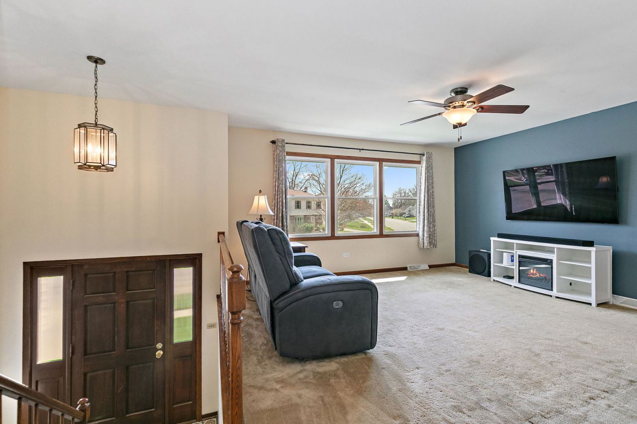 Century Oaks West split-level beauty on a spacious, fully fenced corner lot! The heart of the home features an expansive eat-in kitchen with stainless steel appliances, oak cabinetry, and a breakfast bar. Relax in the impressive sun-drenched addition off the kitchen, which features hardwood flooring and beamed cathedral ceilings. The lower level is a true retreat, offering a generous family room anchored by a cozy brick fireplace and dry bar, plus a versatile 4th bedroom and full bath. Ideally located just blocks from the Big Timber Metra station and Sherman Hospital, with lightning-fast access to I-90, Rt 20, and Randall Rd shopping and dining. Move right in and enjoy ultimate peace of mind with a 1-Year home warranty provided by the seller. Experience the perfect blend of character and convenience.