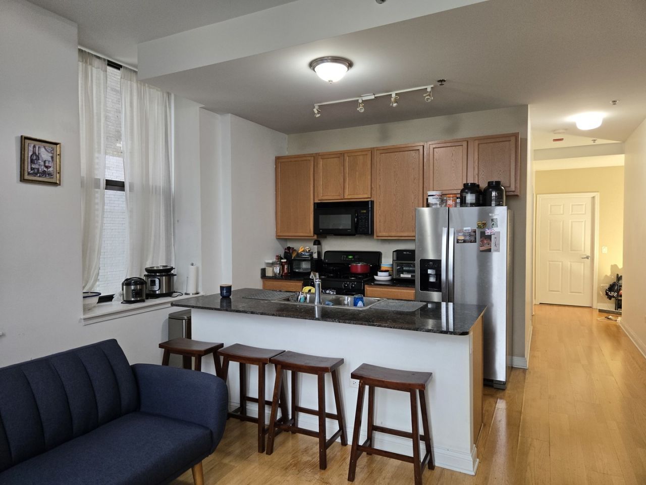 Sunny 2 bedrooms with 1 1/2 bathrooms condo unit located in Downtown Theatre District. High ceiling, Large windows, 42 Oak cabinet, granite countertop kitchen with center island. Two spacious bedrooms with windows and both have floor to ceiling walls, primary bedroom has walk-in closet and linen closet. Washer and dryer located in unit laundry closet. Monthly assessment covers most utilities including cooking gas, heating, AC , Internet/Cable and one storage locker, only electric bill is extra. Full amenity building; fitness center, business center, party room, rooftop deck with dog run, 24hr doorman and onsite management. Located in middle of everything downtown has to offer. just couple blocks from world famous Art Institute, Grant and Millennium Park, Lakefront, Theatres & Shopping.